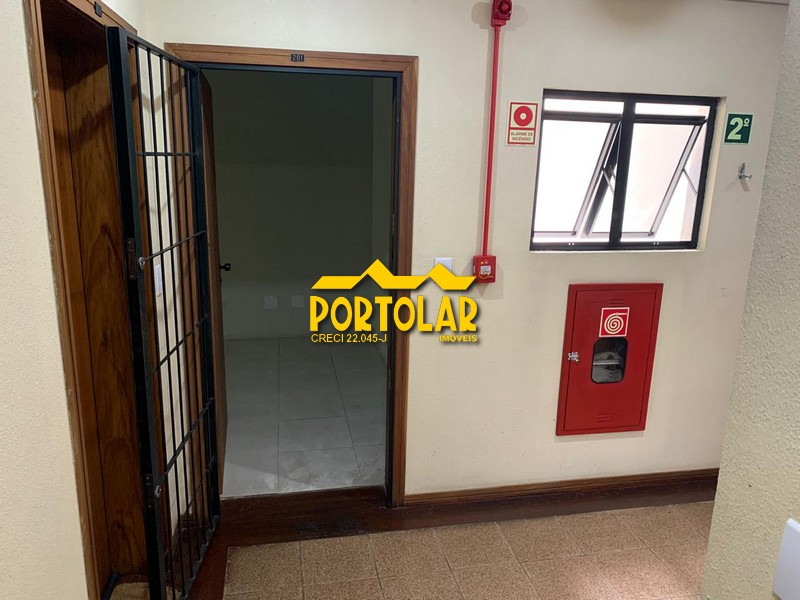 Sala comercial com um banheiro, de frente, com ótima localização e ótima conservação. Já com divisória de vidro e ar condicionado. Condomínio com elevador, portaria e estacionamento. O imóvel acompanha box nº 7.