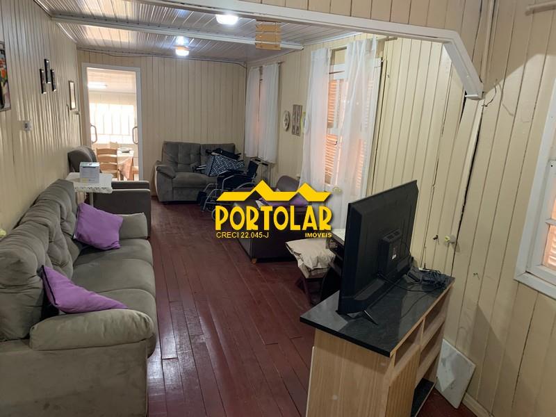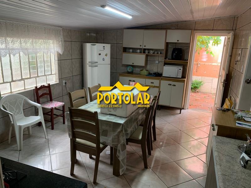 Casa de dois dormitórios, sendo um deles suíte, living espaçoso podendo ser separado em dois ambientes, cozinha ampla, área de serviço e salão com churrasqueira. Em terreno de 300m², com pátio espaçoso, vaga para cerca de três carros e mais uma casa de fundos com um dormitório, sala e cozinha conjugadas e banheiro. Localização próxima à paradas de ônibus, praças, escolas, mercados e demais comércios da região.